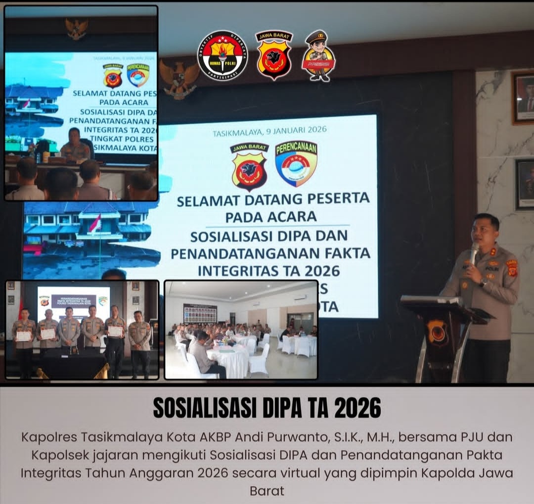 Sementara itu, Kapolres Tasikmalaya Kota AKBP Andi Purwanto, S.I.K., M.H., menyampaikan bahwa kegiatan sosialisasi ini menjadi pedoman bagi seluruh jajaran Polres Tasikmalaya Kota dalam melaksanakan program dan kegiatan selama Tahun Anggaran 2026. Ia menegaskan komitmennya untuk mengawal penggunaan anggaran agar tepat sasaran dan mendukung peningkatan kinerja satuan.