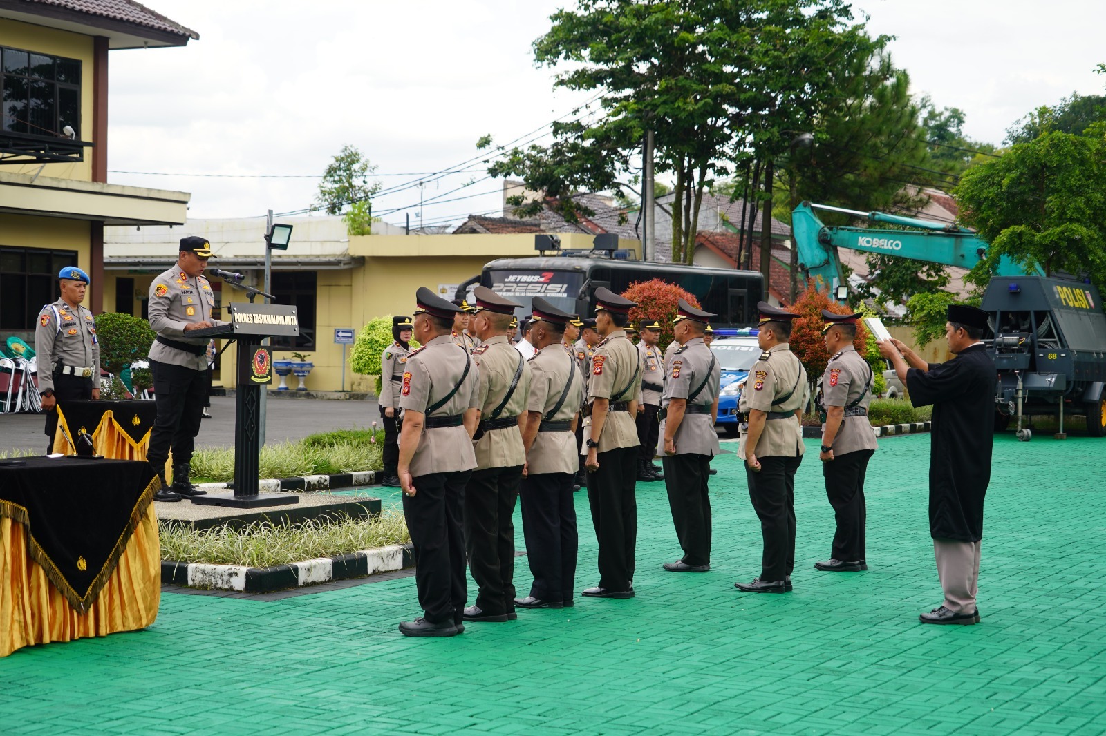 Upacara Sertijab dipimpin langsung oleh Kapolres Tasikmalaya Kota AKBP Moh Faruk Rozi, S.H., S.I.K., M.Si., serta dihadiri oleh para Pejabat Utama Polres Tasikmalaya Kota, perwira, dan personel Polres Tasikmalaya Kota. Khusus untuk Polsek Ciawi dan Polsek Manonjaya, masing-masing turut mengikutsertakan lima orang anggota.