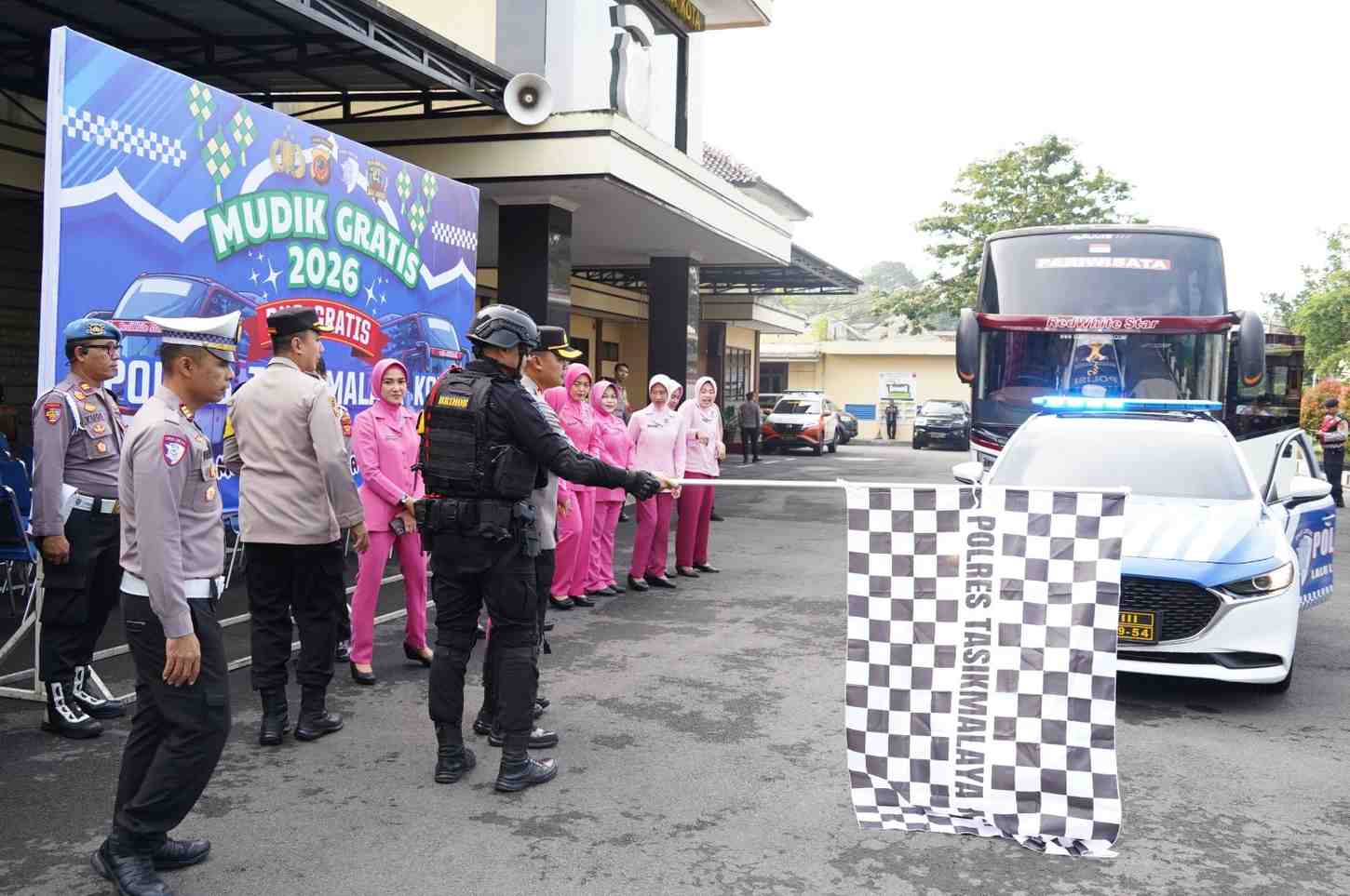 Polres Tasikmalaya Kota Berangkatkan Mudik Gratis 2026 Tujuan Solo dan Yogyakarta dalam Rangka Ops Ketupat Lodaya 2026