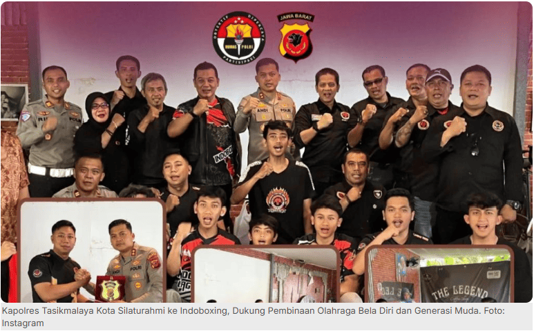 TentaraPolisi.id – Kota Tasikmalaya, Kapolres Kota Tasikmalaya AKBP Andi Purwanto bersilaturahmi ke Indoboxing Tasikmalaya pada Minggu (11/1/2026). Kunjungan ini menjadi wujud nyata dukungan Polri terhadap pembinaan olahraga bela diri sekaligus pengembangan potensi generasi muda di wilayah Kota Tasikmalaya.